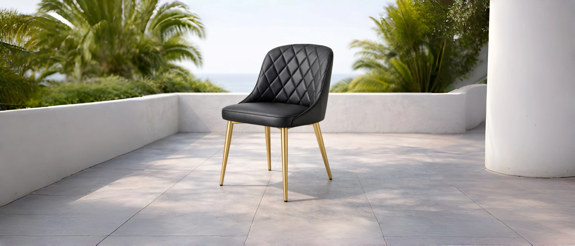 Chaises de salle à manger en cuir synthétique noir et acier doré
